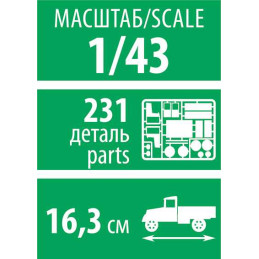 Model auta ke slepení. Velikost: 1:24; 17,5 cm. Balení obsahuje: barvy, štětec, tekuté lepidlo, pinzetu, brousek a kleštičky.