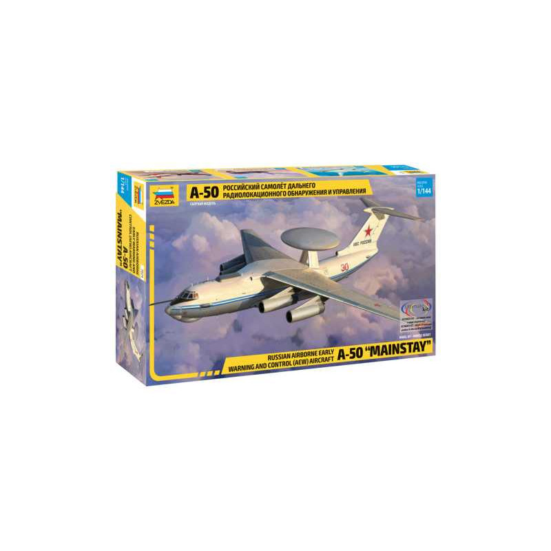 Model letadla ke slepení. Velikost: 1:144; 27 cm. Balení obsahuje: 63 dílků ke slepení.